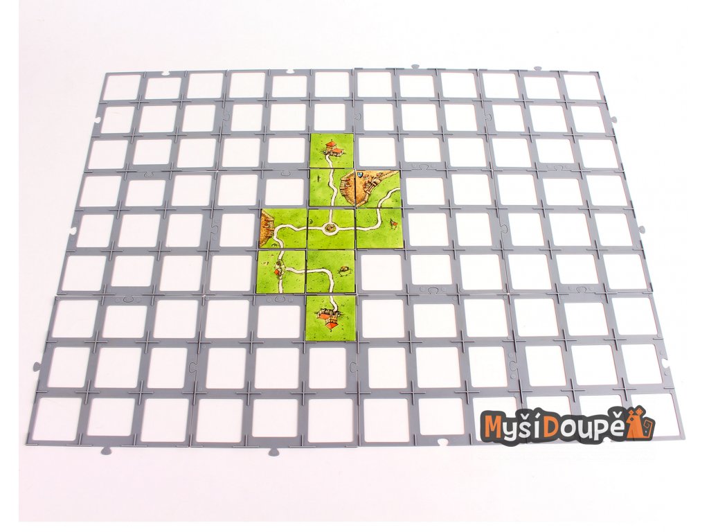 1 kus mřížky pojme 9 destiček (3 x 3), jednotlivé mřížky naleznete na https://www.mysidoupe.eu/karak-carcassonne-podlozka-na-hraci-dilky-verze-2/