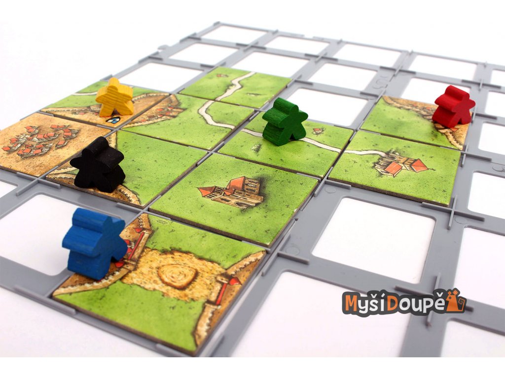 Rozjíždějí se vám destičky po stole? Nevíte, jak posunout tu obrovskou sestavu od kraje stolu, aniž by se to celé rozpadlo? Tato vychytávka dokáže destičky hezky uspořádat a umožňuje také snadný posun všech dílků najednou. Tuto vychytávku oceníte hlavně pokud hrajete hru Karak či Carcassonne s dětmi.