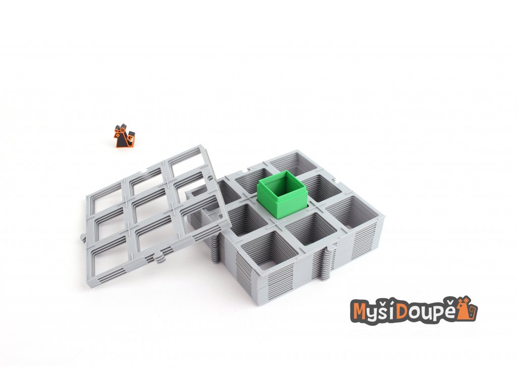 Díky zámkům lze jednotlivé kusy spojovat a vytvořit si tak velikost a tvar podložky dle potřeby. Do této mřížky přesně hrací dílky nejen pro hru Karak či Carcassone.