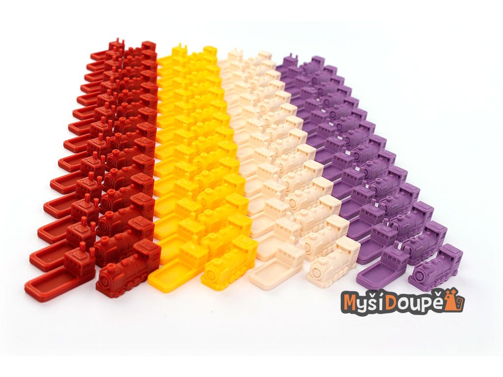 3D alternativa žetonů vlaků a lodí pro hry Brass: Birmingham a Lancashire. Sada obsahuje: 14 vlaků a 14 lodí pro každého hráče.