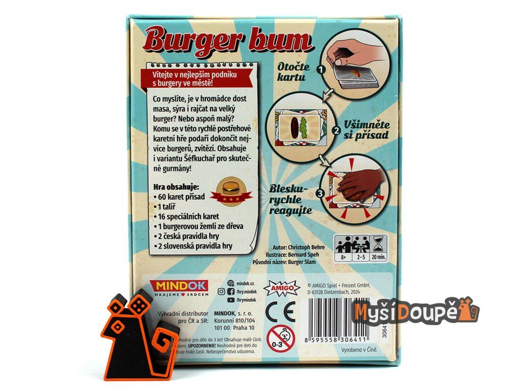 Pokud hledáte odpověď na otázku, jaká je nejlepší hra na párty s tématem jídla, Burger Bum je díky své dynamice a možnosti blafování jasnou volbou. Je to skvělý dárek pro milovníky deskovek, kteří mají rádi hry jako Dobble nebo Halli Galli.