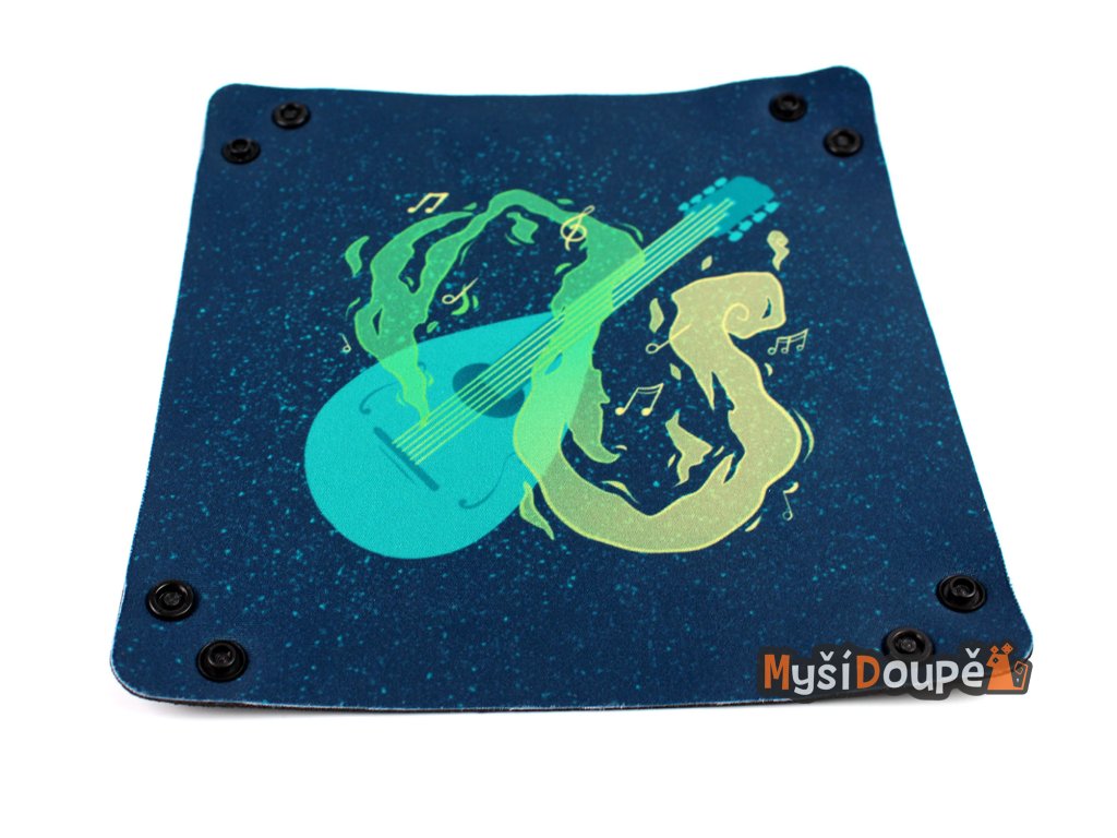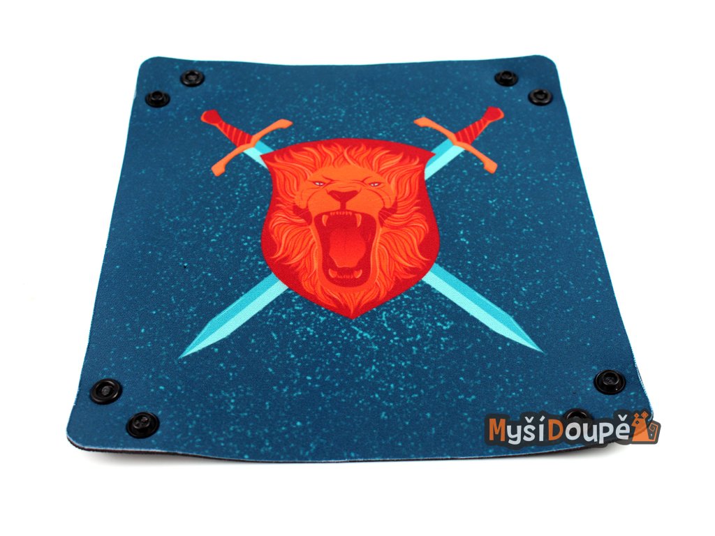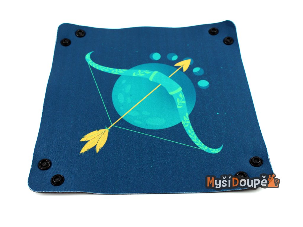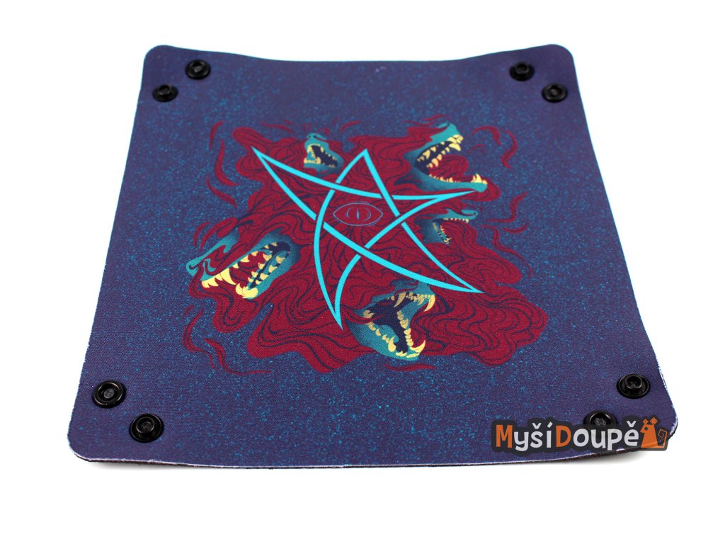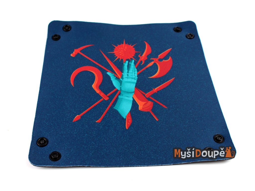 Skládací čtvercový dice tray z neoprenu pro házení kostek s logem Myší doupě. Vhodný jako doplňek pro RPG a deskové hry, aby jste kostky nemuseli lovit všude po...