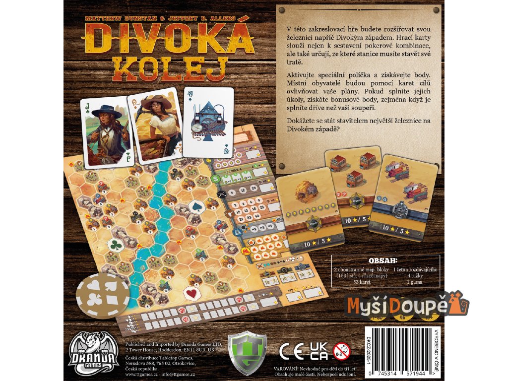 Česká verze hry Divoká kolej vychází v deluxe edici, tedy nabízí 4 různé mapy pro vyšší znovuhratelnost, nové úkoly, dřevěný žeton rozdávajícího a díky možnosti zapojit velký počet hráčů je ideální i pro velké skupiny a herní akce.