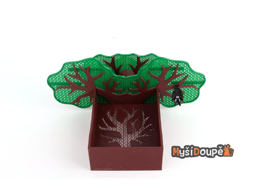 Strom se skládá z kmene, který slouží jako stojan na karty, dvou korun se zacvakávacím mechanismem, domečku, držáčku na světlo a netopýra Ludvy.