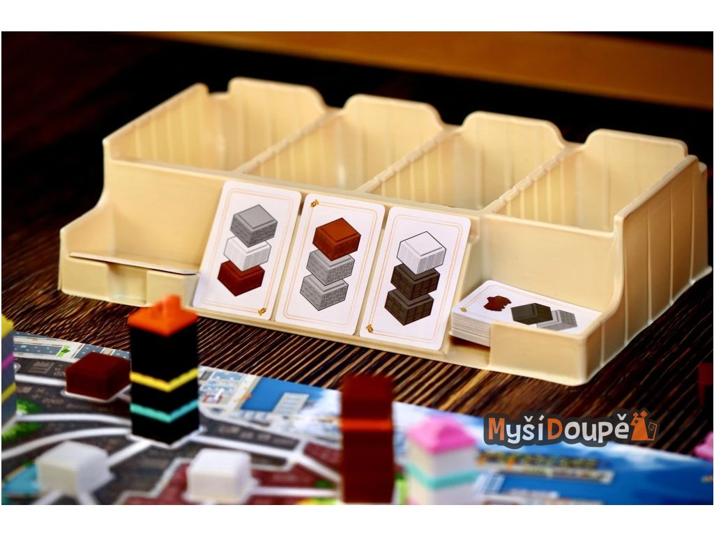 V každém tahu si buď vyberete kartu materiálu z nabídky nebo zahájíte stavbu nové budovy prvním podlažím. Na to ale musíte postavit podlaží všech budov sousedících. Poté umístíte svou střechu na jednu z budou, ke které jste právě přispěli.
