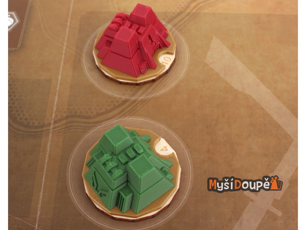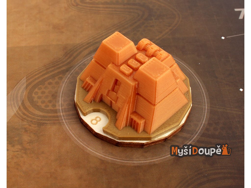 Žetony tvůrcovských háků a štítového valu pro hru Duna: impérium - Povstání. 3D plastové žetony nahrazující původní kartonové.