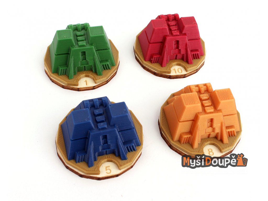 Sada obsahuje: 4 počítadla (1 v barvě každého hráče)