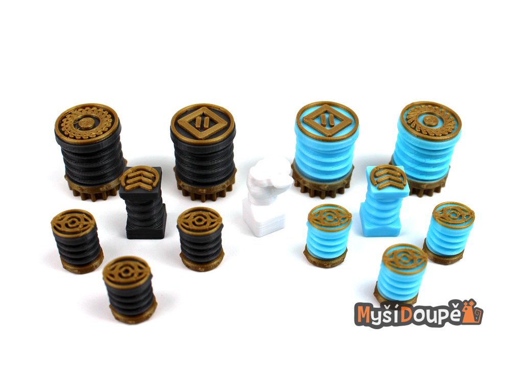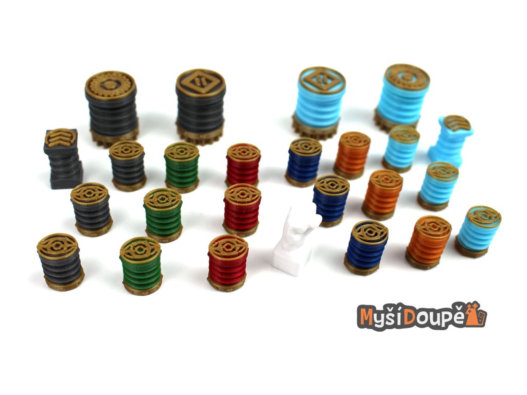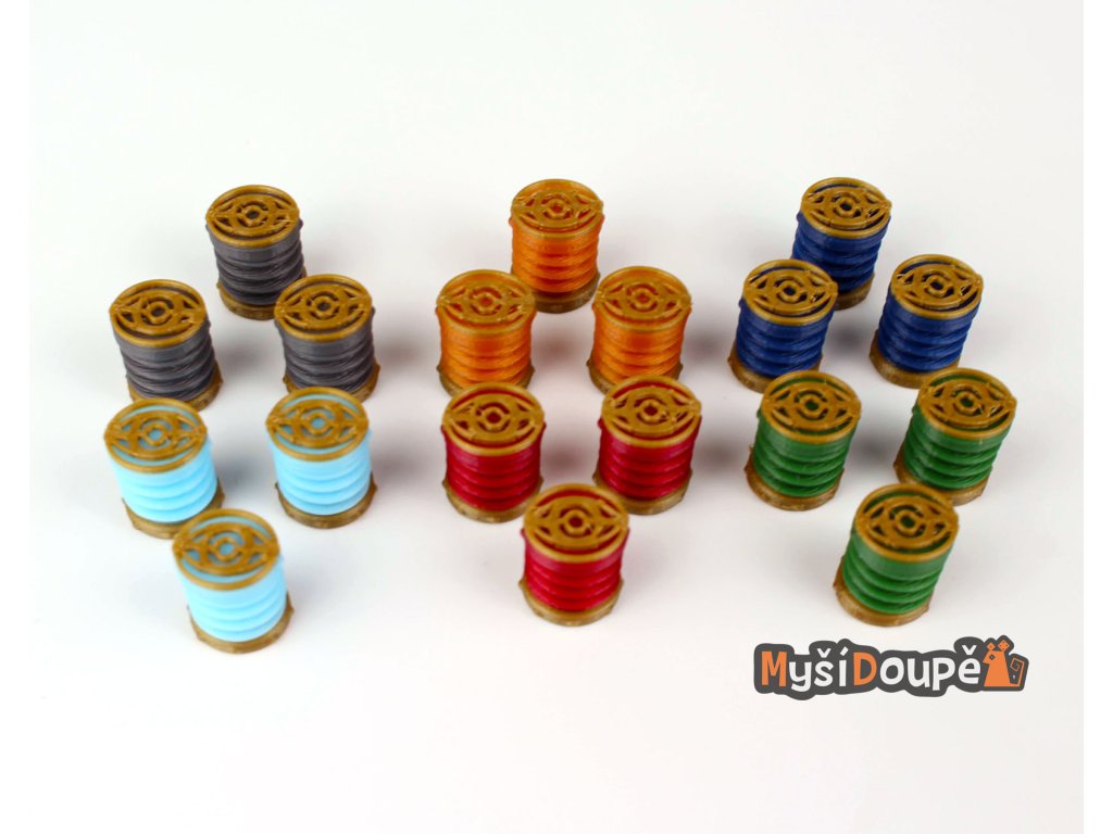 Kompletní sada základních žetonů surovin pro hru Duna: Impérium.