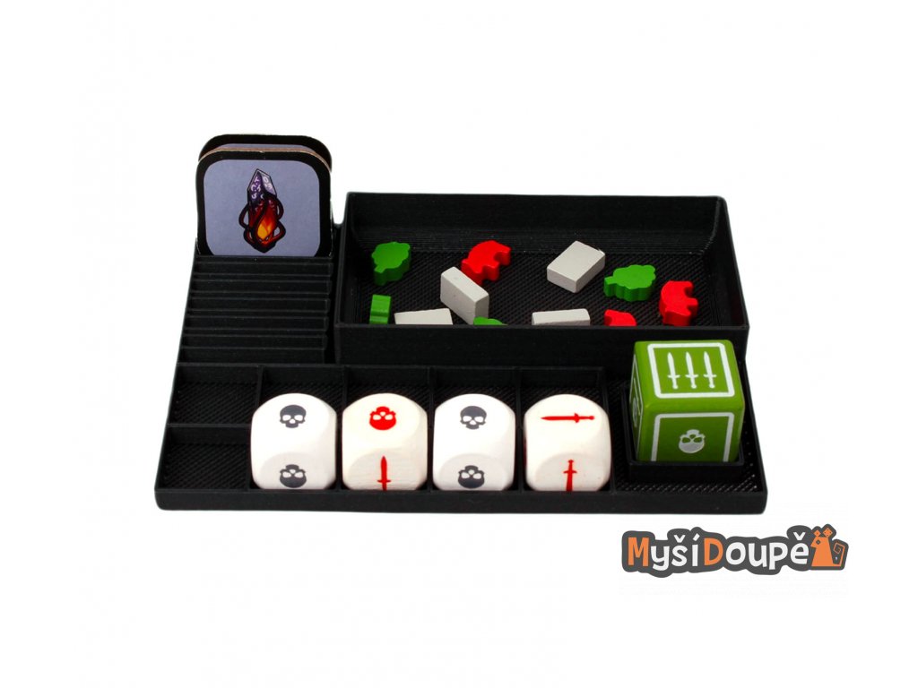 You can clearly arrange your trophies (soul stones) in it, up to 10 army cubes can be placed in it, and there is also a place for a hero cube. It also includes a bowl for ingredients.