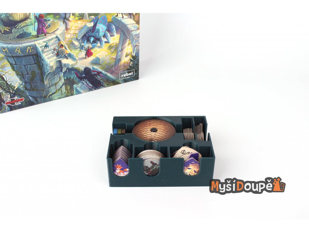 expansionIt is a very practical and elegant accessory that facilitates the organization and storage of game components. The organizer is designed to fit into one of the sections of the game's original box. The insert contains several compartments that are adapted to the size and shape of the individual components (12 Moon Lizard Tokens, 8 Magic Equipment Tokens, 12 Magic Spirit Tokens, Fierce Hunter Tokens, 3 Toughness Indicators, 3 Moon Shard Tokens). Other folded cardboard figures and equipment fit into the remaining two sections of the box. Thanks to our organizer, your game preparation will be much faster.