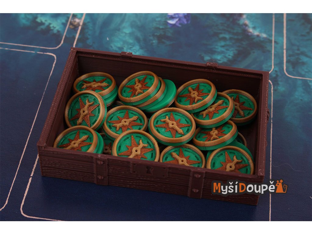 Even Indiana Jones cannot do without a quality compass. Colorful 3D compass tokens for the Lost Island of Arnak game.