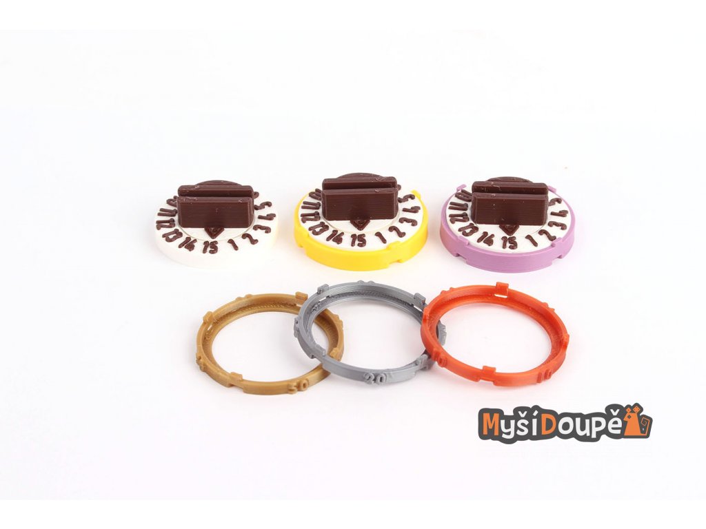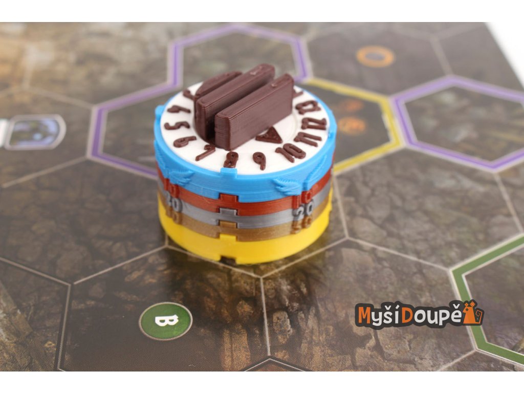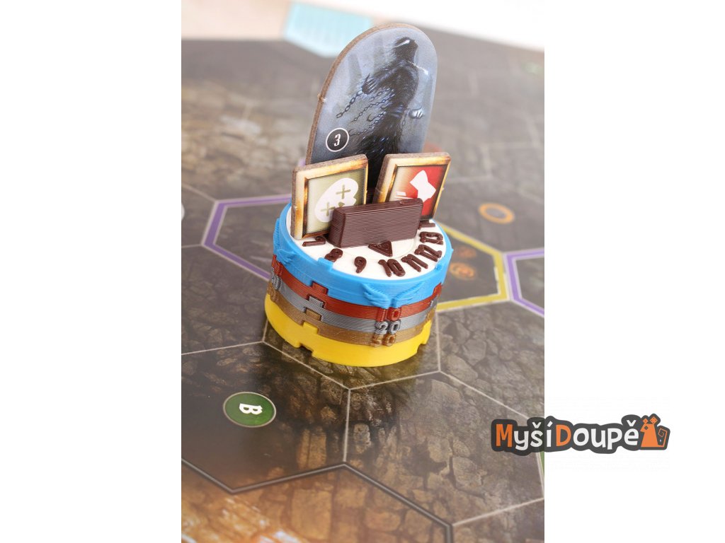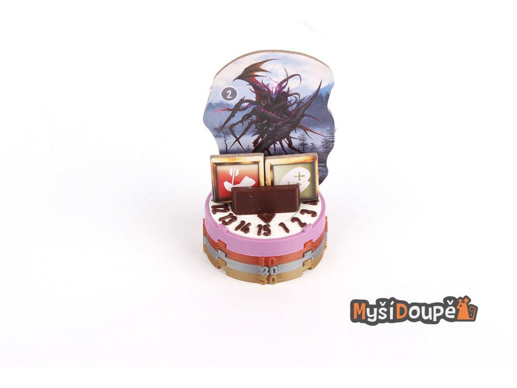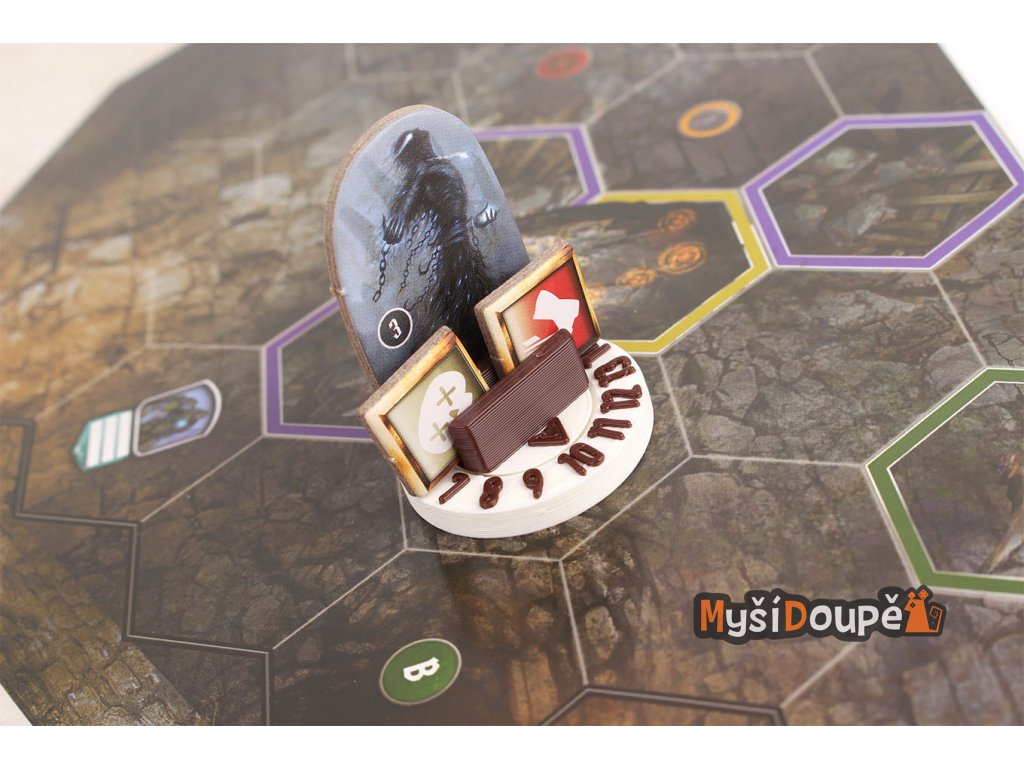 Podstavce s počítadlem životů a možností barevného označení dle druhu nestvůry. Obsahuje i místo pro označení stavů (zpomalení, omráčení atd..). Drážky pro monstra a stavy o šířce 2mm. Drážka drží karton lehce, aby se zabránilo otlakům, které způsobují běžné stojánky.