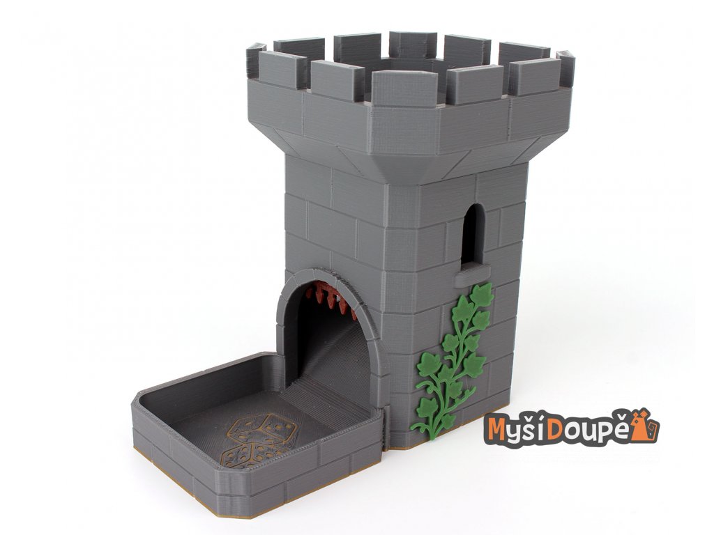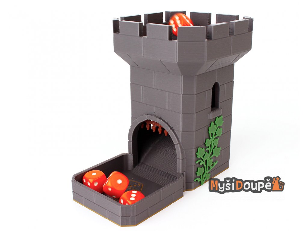 Házecí věž ve tvaru hradu, velká varianta pohodlně pojme i větší kostky (malá je pro klasické kostky velikosti 16mm).