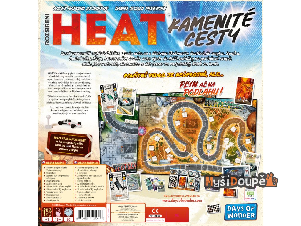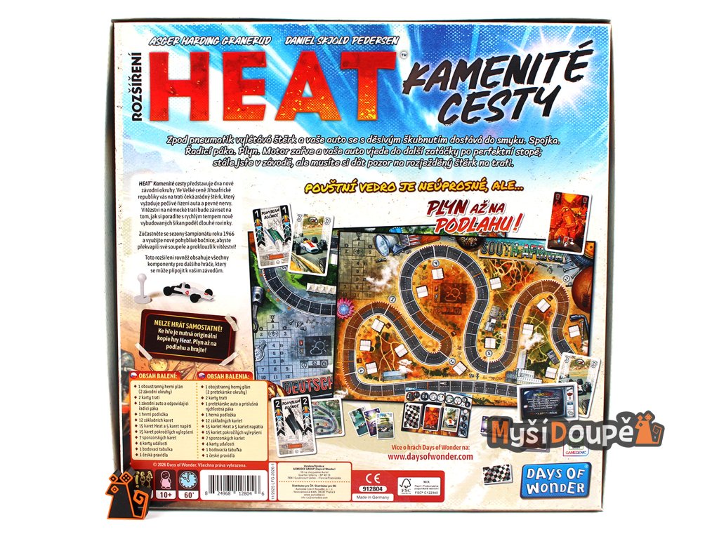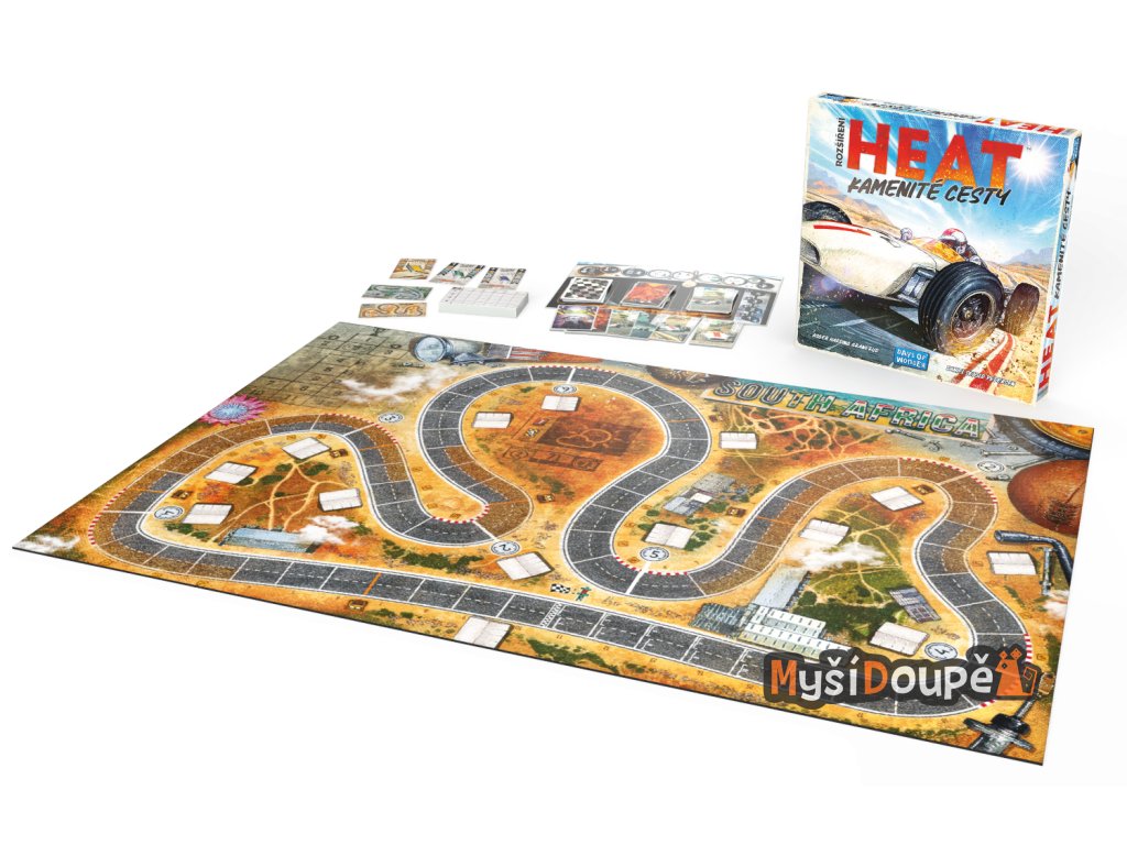 HEAT: Kamenité cesty (v originále Heat: Rocky Roads) je v pořadí třetí rozšíření pro celosvětový deskoherní bestseller HEAT. Přináší nové prvky, které prověří vaše strategické myšlení i schopnost riskovat.