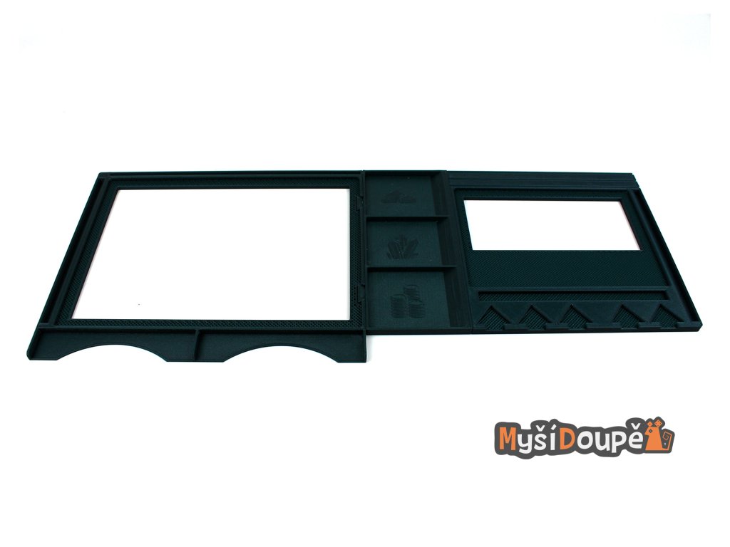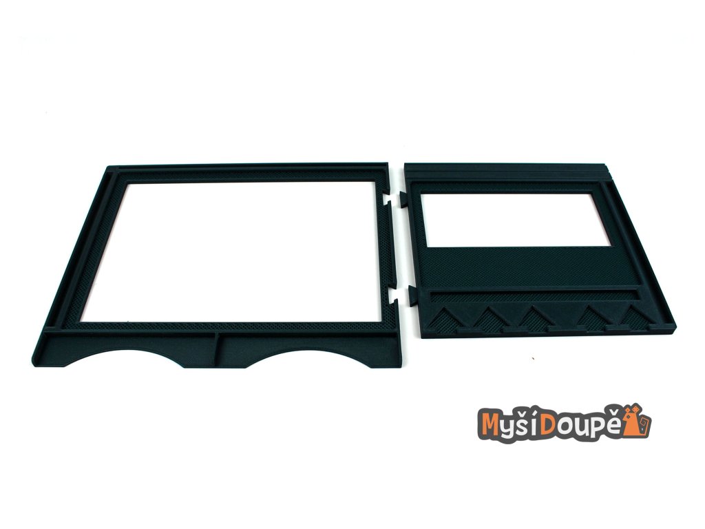 Dashboard je navržen tak, aby bezpečně držel herní desky (charakterové i frakční), žetony a karty. Díky tomu budeš mít všechny důležité komponenty na dosah ruky a tvá herní plocha zůstane přehledná a organizovaná. Je to dokonalý pomocník pro každého stratéga, který chce mít vše pod kontrolou.