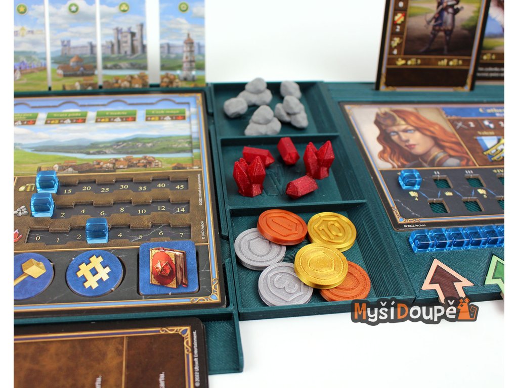 - Perfektní organizace herních komponentů – žádné ztracené žetony nebo rozházené karty