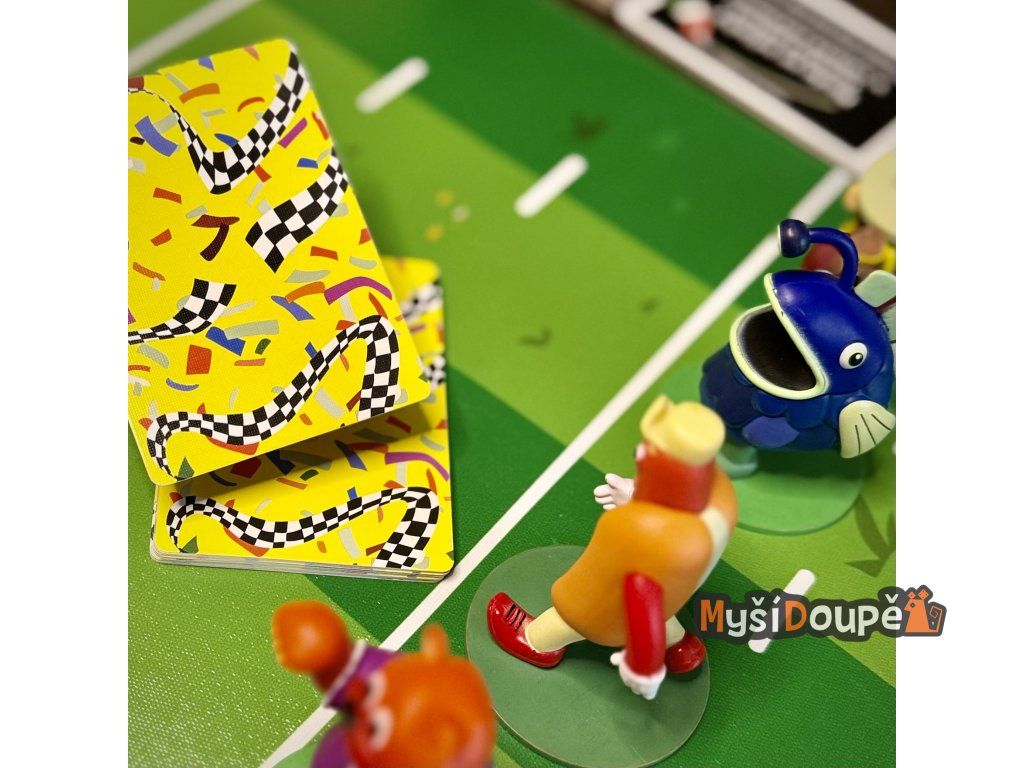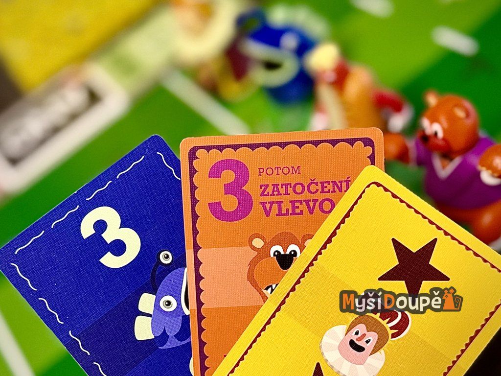 Akce: Dealer otáčí karty pohybu, vodič posouvá maskoty. Atmosféra houstne!