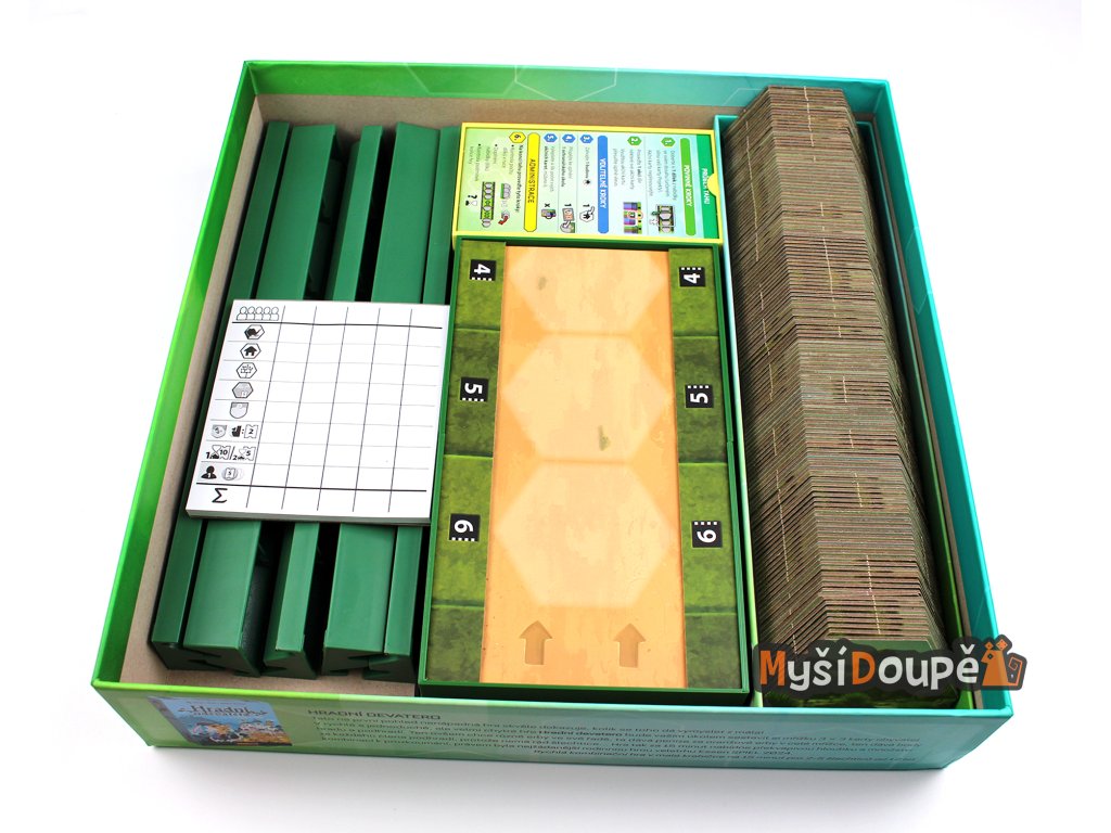 Hráčské krabičky jsou navrženy tak, aby jako víčko sloužila destička nápovědy každého hráče.