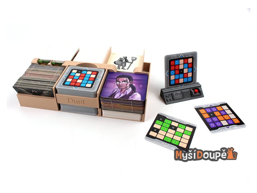 Kapacita 3v1: Speciální oddíly pro textové karty, obrázkové karty i komponenty pro kooperativní Duet.