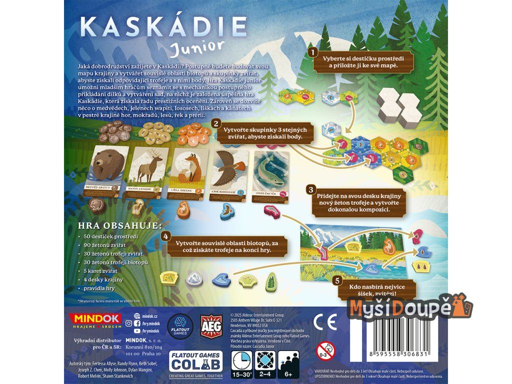 Tato varianta veleúspěšné a cenami ověnčené hry Kaskádie je speciálně navržena tak, aby si mechanismus vytváření sad a propojování biotopů užily i děti v předškolním a mladším školním věku.