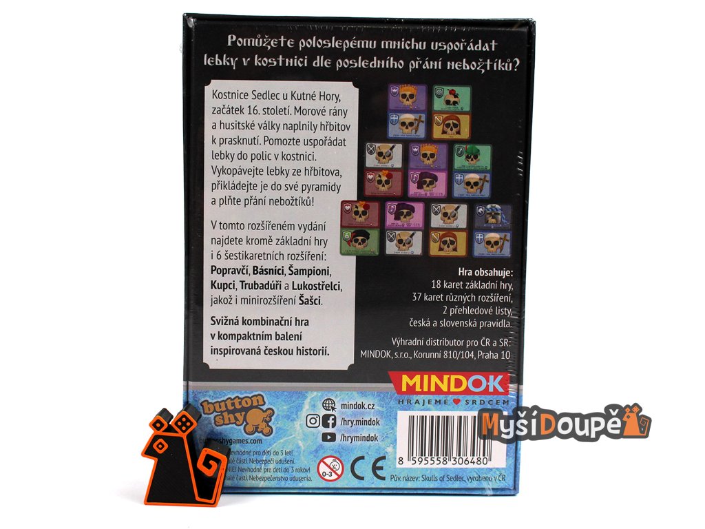 V tomto rozšíreném vydání hry Kostnice Sedlec najdete kromě základní hry i 6 šestikaretních rozšíření: Popravcí, Básníci, Šampioni, Kupci, Trubadúři a Lukostřelci, jakož i minirozšírení Šašci.