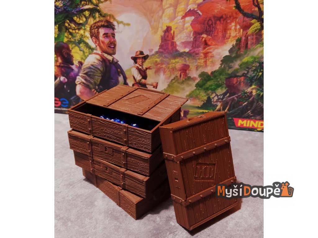Truhla se zasouvacím víkem na uskladnění žetonů. Perfektně se hodí k uchovávání vašich pokladů. Díky víku v ní lze žetony trvale skladovat i v herní krabici a zrychlit tak přípravu hry.