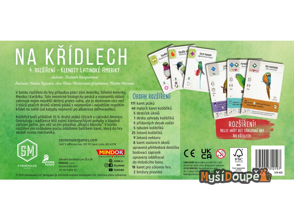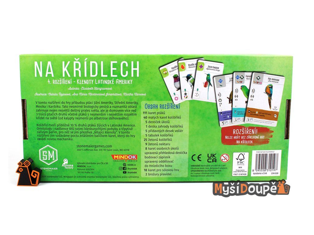 Hledáte způsob, jak osvěžit své partie jedné z nejlepších moderních deskových her? Na křídlech: Klenoty Latinské Ameriky přináší do vaší rezervace barvy a energii Střední a Jižní Ameriky. Toto rozšíření není jen "více téhož", ale představuje revoluční mechaniky, které ocení jak rodinní hráči, tak zkušení stratégové.