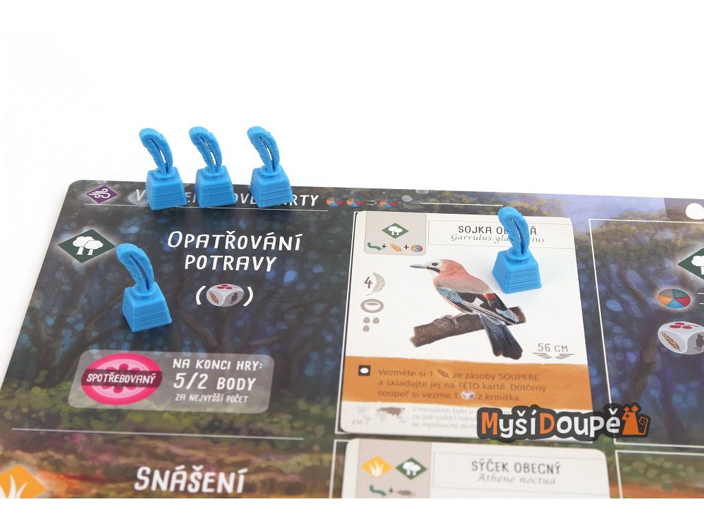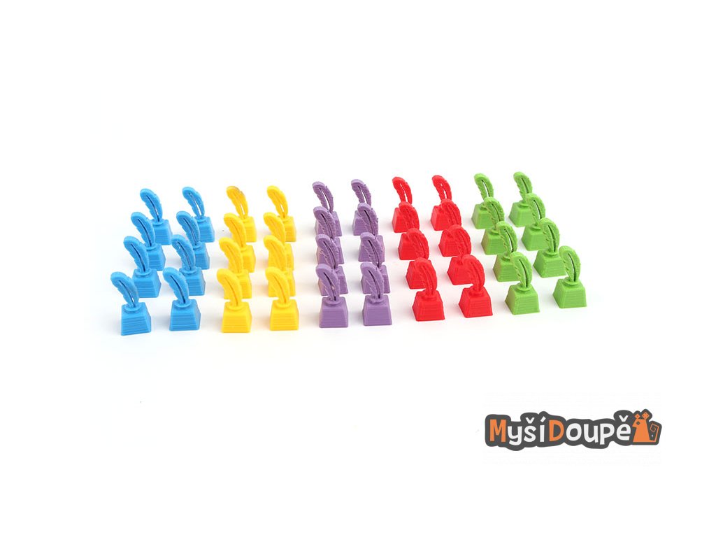8 figurek pro každého hráče ze základní hry nebo varianta pro rozšíření Hnízdem v Asii.