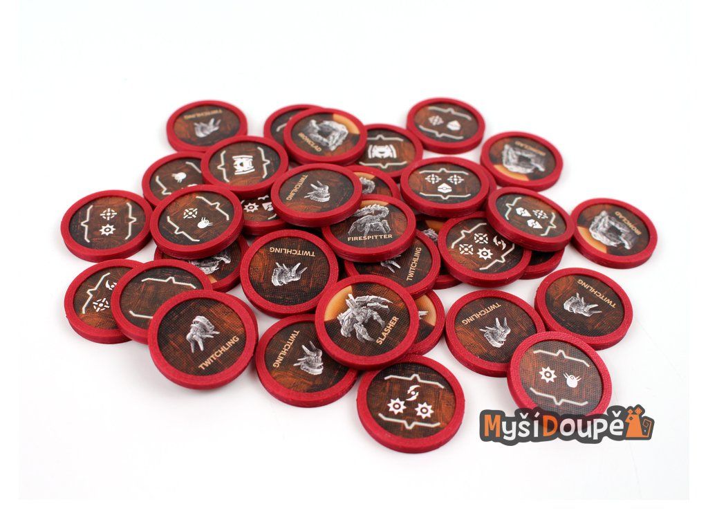 Poznámka: Balení obsahuje pouze plastové kryty. Kartonové žetony jsou součástí základní hry nebo příslušného rozšíření.