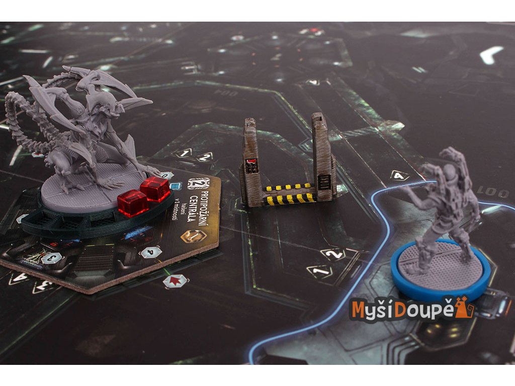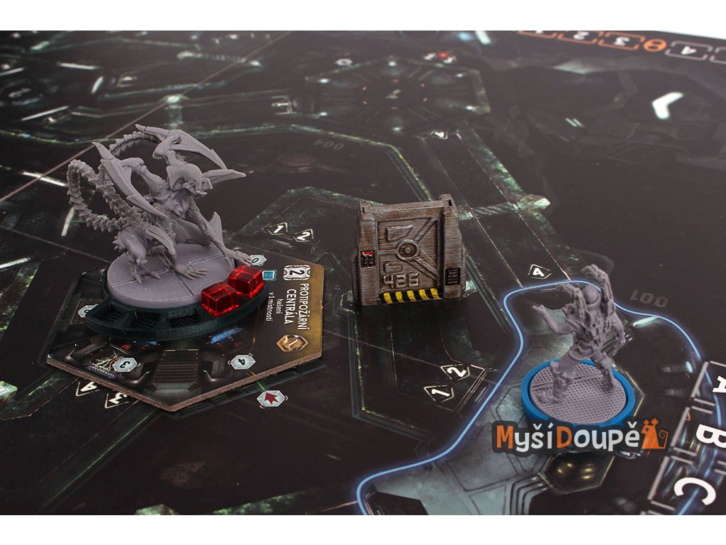 Deska pro panel vetřelců se zásobníkem na žetony a tabulkou infekce, v army green barvě, nebo deska Laboratoř pro Nemesis Lockdown, tmavě modrá barva.