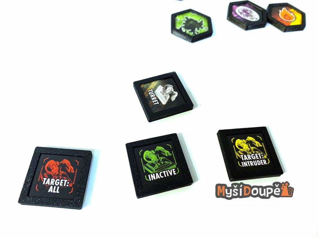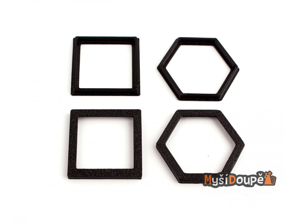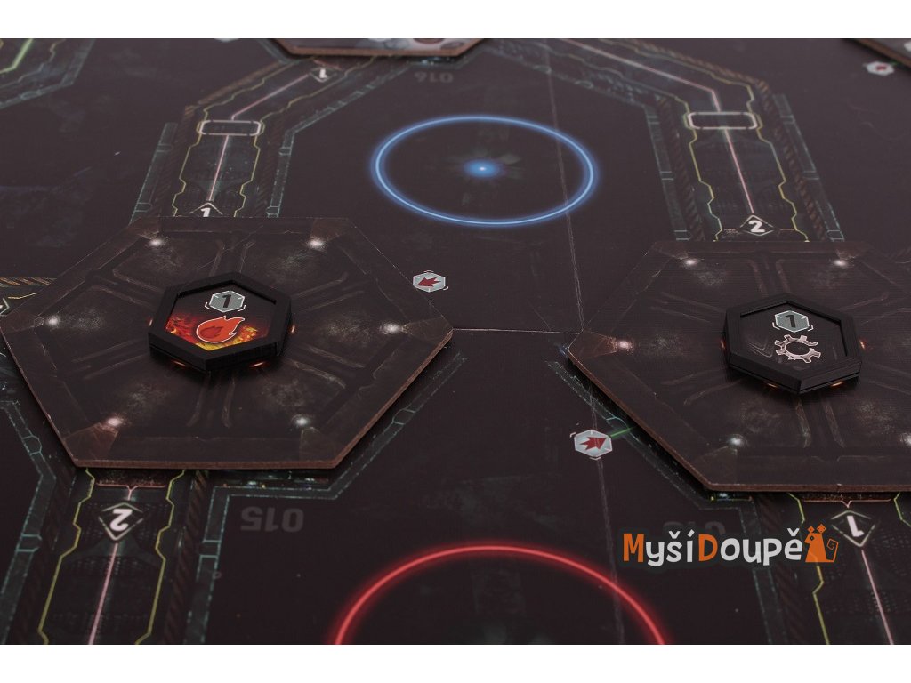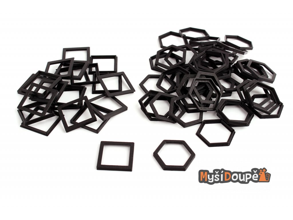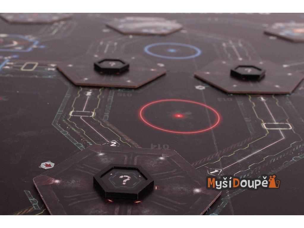 Zacvakávací hexové kryty chránící žetony průzkumu před opotřebením a zvyšují herní komfort.
