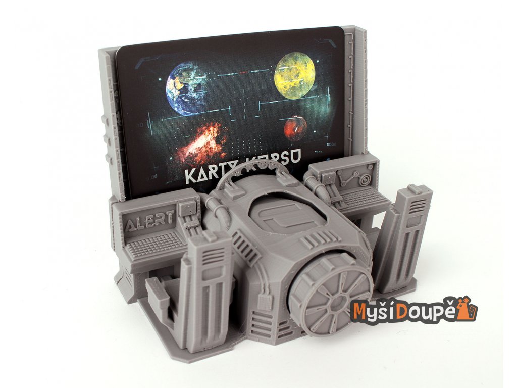 Model palubního počítače v kokpitu vesmírné lodi obsahuje display (držák) pro vložení karty kursu a otočné nastavení koordinátů A,B,C,D.