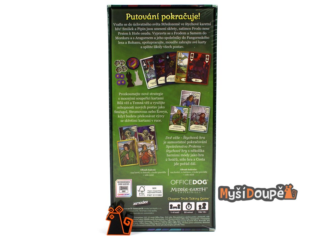 Dvě věže - Štychová karetní hra je samostatné pokračování Společenstva Prstenu – štychové karetní hry (kapitoly 1 až 18 naleznete v předchozí hře.) s několika herními módy jako hra 2 hráčů, sólo hra a Cesta jde pořád dál.