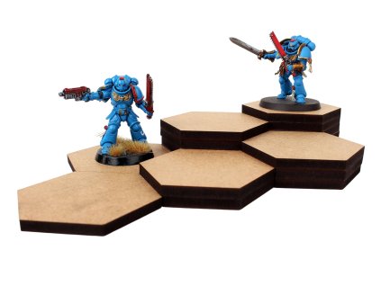 Podstavce pod figurky hexové o průměru 55mm - dřevotříska (MDF), lasercut. Vhodné pro modeláře i na barvení figurek. Sada obsahuje: 5 kusů