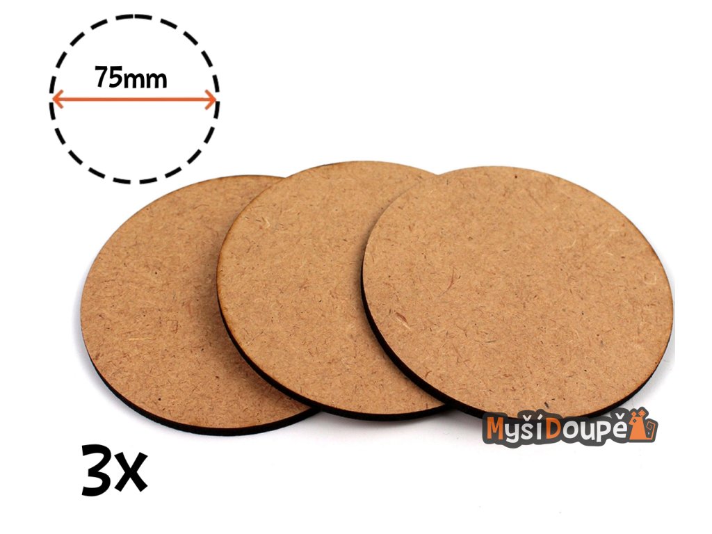 Podstavce pod figurky kulaté. Dřevotříska (MDF), lasercut. Sada obsahuje 10 kusů.