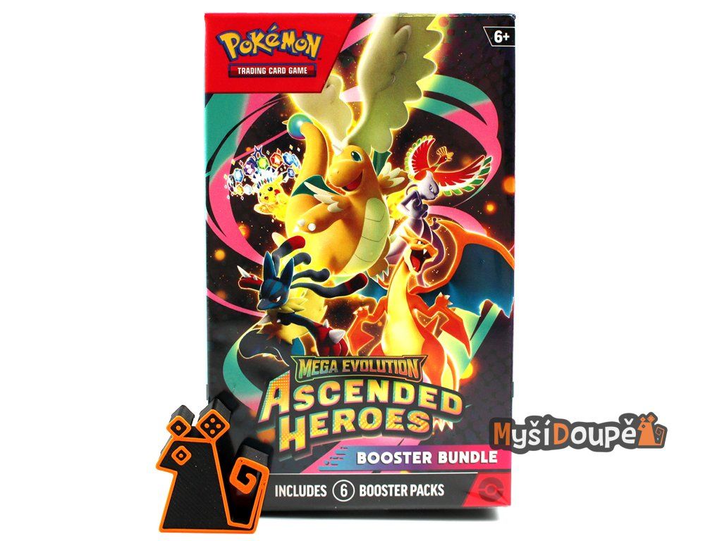 Obsah balení (Ascended Heroes Bundle): Tento produkt obsahuje 6 samostatných boosterů. Každý booster balíček je složen z 10 náhodně namíchaných karet: