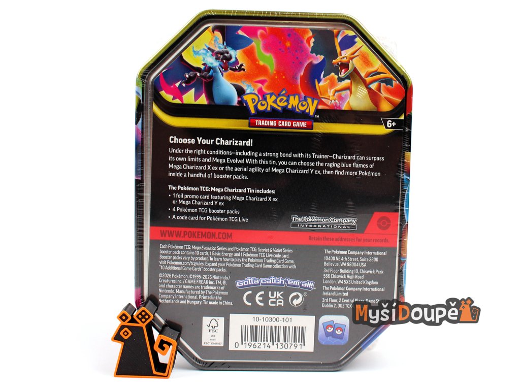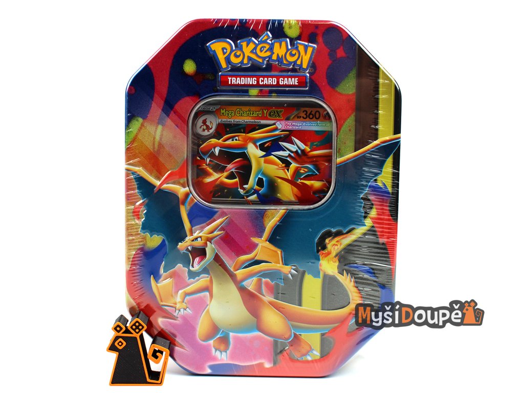 Vzácná promo karta: Uvnitř najdete speciální foilovou kartu Mega Charizard-EX (v designu podle varianty plechovky), která okamžitě zvýší hodnotu vaší sbírky.