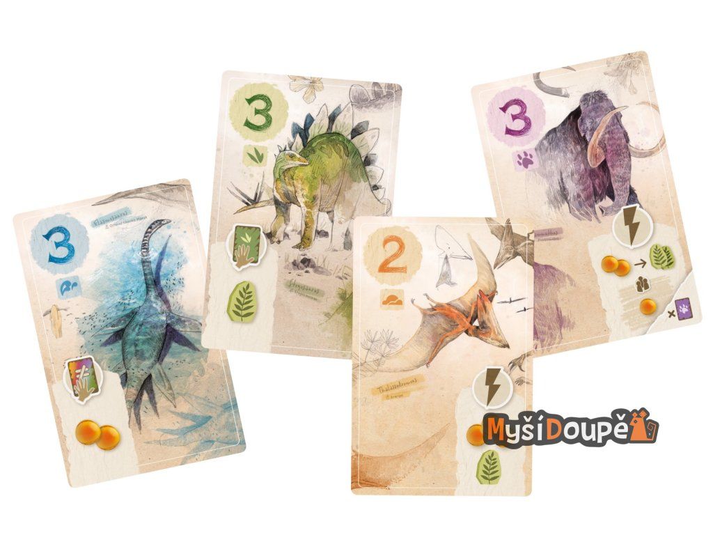 Studujte a kombinujte: Každá karta fosilie má unikátní schopnost. Dokud ji máte ve své "studovně", můžete využívat její efekty a spouštět silné řetězové reakce.
