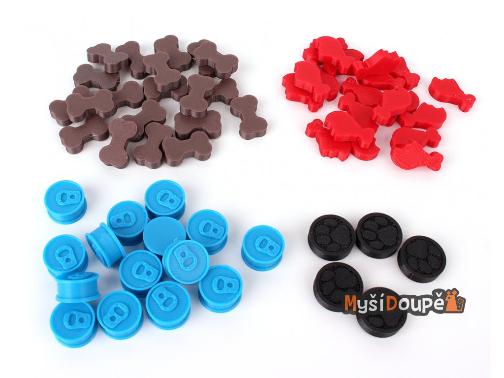 Sada žetonků pro hru Psí parťáci, celkem 60 kusů.