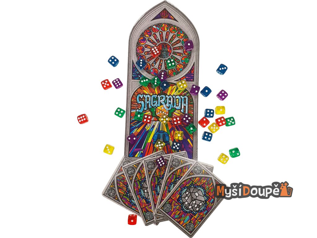 Pozvěte ke hře Sagrada až další dva sklenáře díky rozšíření pro 5-6 hráčů. Díky tomuto rozšíření si můžete hru Sagrada rozšířit nejen o dva hráče, ale také o nové karty osobních úkolů, nářadí a okenních vzorů. Najdete v něm i krabičku pro pohodlnější hody kostkami a novou, zrychlenou variantu „Osobní zásoba kostek“.
