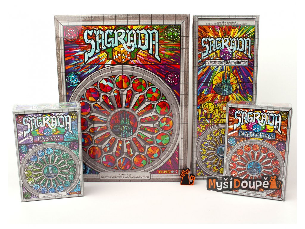 V Rozšíření Sagrada: Passio můžete získat rozličné schopnosti pomocí karet inspirace a plnit nové osobní úkoly pomocí křišťálových kostek, jakož i nové společné úkoly kladoucí nároky na souměrnost vašeho dokončeného vzoru. Dokážete do svého okna vnést nejlepší harmonii ze všech?