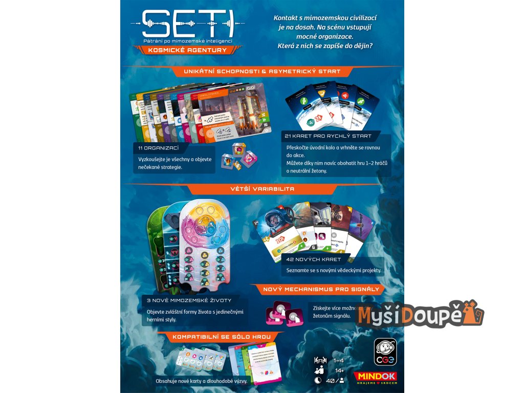 Setkejte se se třemi novými mimozemskými druhy, z nichž každý přináší své vlastní unikátní zvraty, a přidejte více než 40 nových karet projektů hladce zapadajících do hlavního balíčku. Karty rychlého startu, navržené pro použití s organizacemi, vám umožní přeskočit pomalejší úvodní kolo a rovnou se ponořit do akce. Nové žetony signálů nabízejí nové možnosti pro vylepšení vaší strategie skenování.