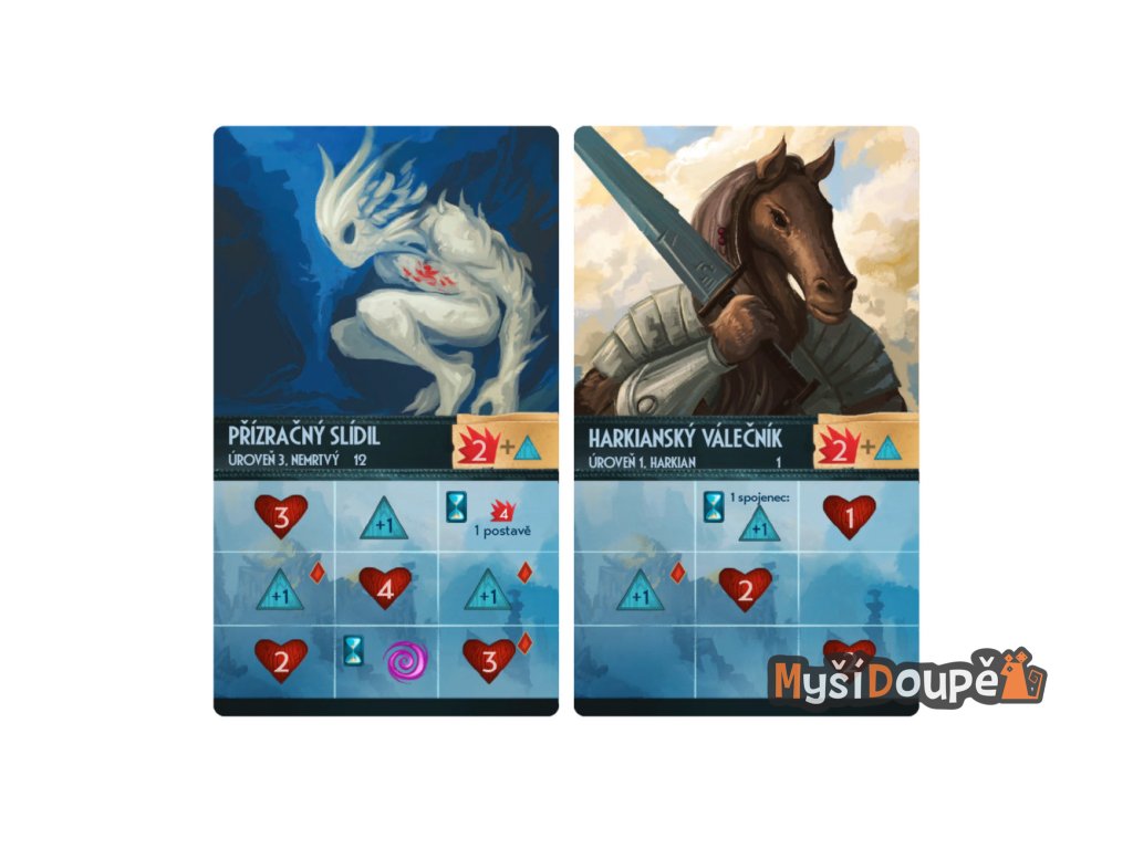 - Žetony stavu (5 od každého druhu): Nízká morálka, otrava, šílenství, slabost a strach