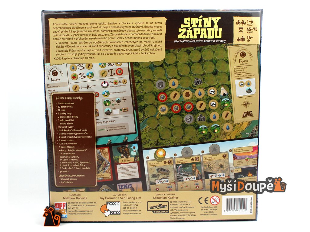 Stíny Západu: Hra zasazená do světa Manifest Destiny je desková hra založená na komiksu Manifest Destiny o lehce alternativní historii kolonizace Ameriky. V této kooperativní deduktivní hře se každý z hráčů ujme role jednoho z členů výpravy a vydá se na průzkum území. Do děrované herní mapy se skrytě vkládají různé mapy, které je třeba opatrně odhalovat.