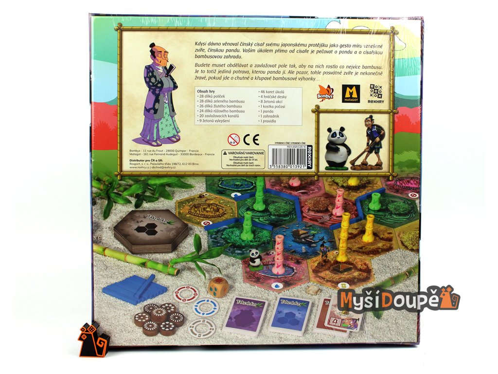Nádherné komponenty: Hra obsahuje detailní malované figurky pandy a zahradníka, které okamžitě upoutají pozornost.