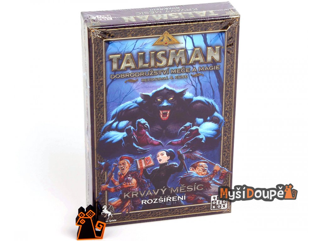 V expanzi najdete přes 100 karet a také tři nové postavy (lovkyni upírů, vykradače hrobů a temného proroka), nadto i mechaniku dne a noci a možnost, že se z hráče stane vlkodlak. Pokud chcete menší rozšíření, které toho do hry Talisman přináší hodně, tak Krvavý měsíc je skvělou volbou!