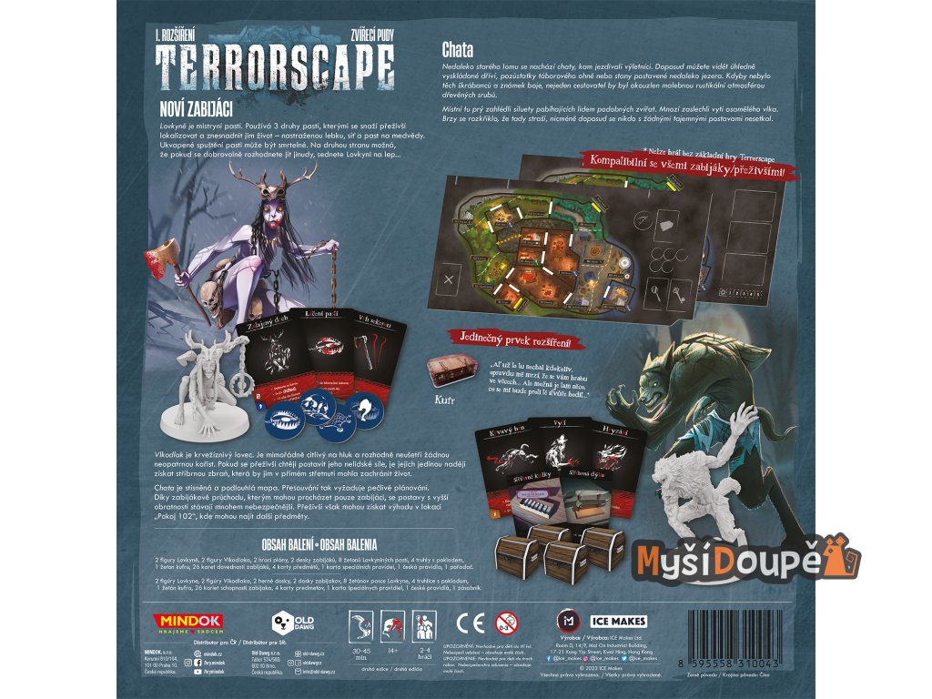 Rozšíření Terrorscape: Zvířecí pudy přináší do hry nové nebezpečí a nové prostředí, které prověří vaše schopnosti přežití. Osamělí cestovatelé se ocitají v blízkosti starého lomu a malebné Chaty, kde se pověsti o siluetách zvířat a vlčím vytí mění v děsivou realitu. Přidává dva nové asymetrické zabijáky, Vlkodlaka a Lovkyni, z nichž každý nabízí zcela odlišný herní zážitek a strategie.
