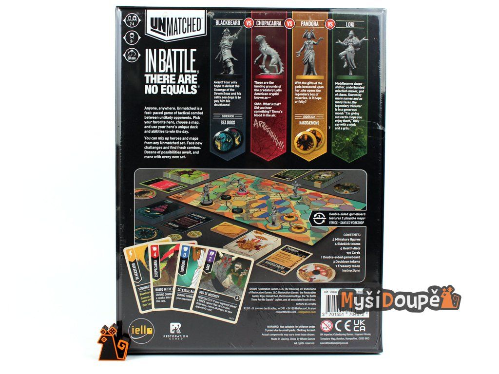 Unmatched je asymetrická miniaturní bojová hra pro dva nebo čtyři hráče. Každý hrdina je zastoupen jedinečným balíčkem karet navrženým tak, aby připomínal jeho bojový styl....
