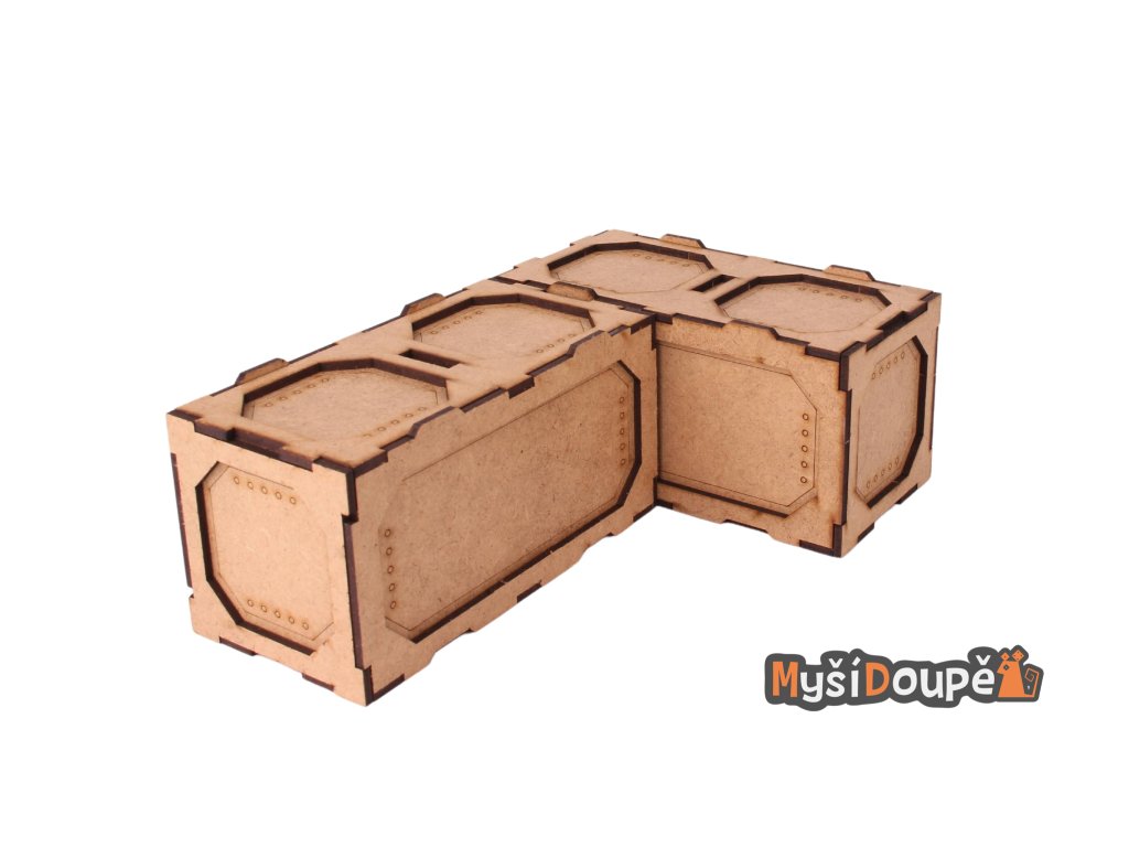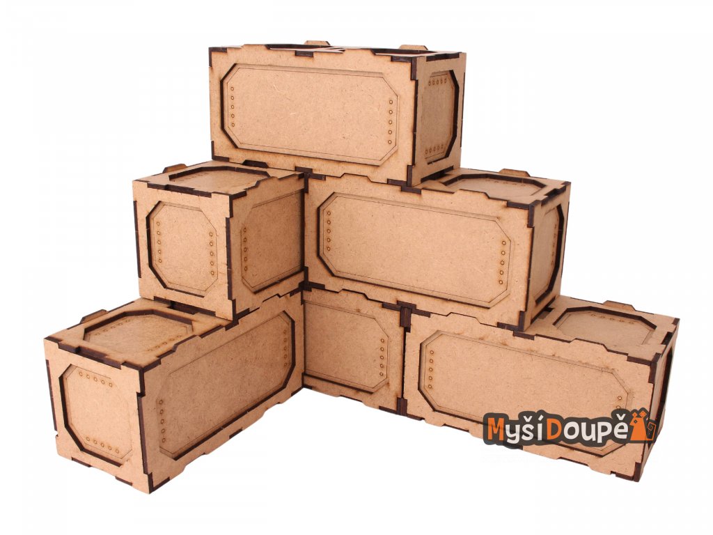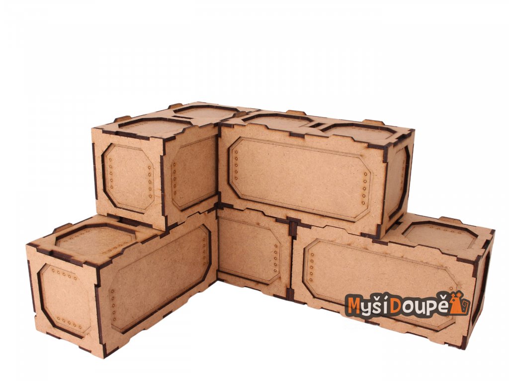 Krabice/kontejnery lze skládat na sebe a vytvářet tak různorodé konstrukce. Je pouze na vás jak tyto prvky nakombinujete a využijete, jsou vyrobeny z MDF o síle 3mm a lze je tedy snadno nabarvit či jinak upravit.