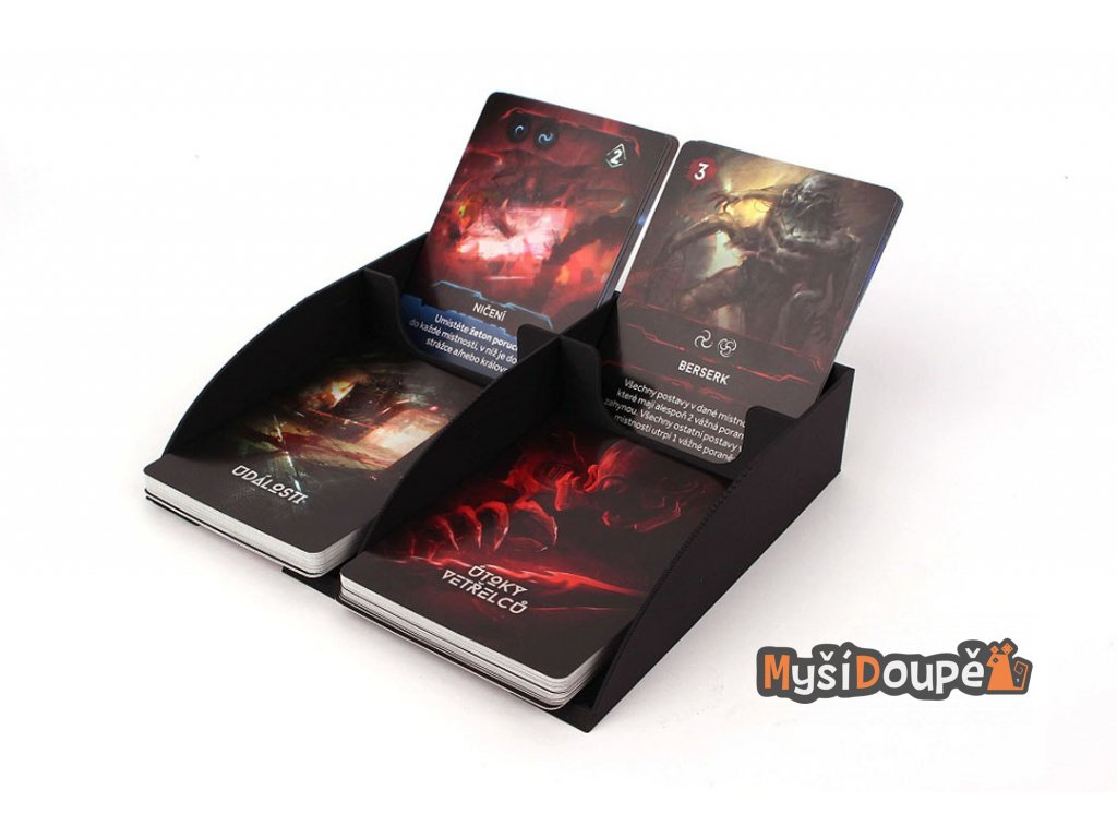 Zásobník na 2 dobírací a 2 odkládací balíčky karet. Ušetří místo a obalené karty se vám nebudou rozjíždět po stole.